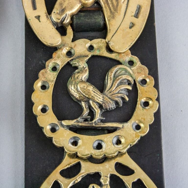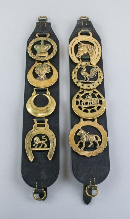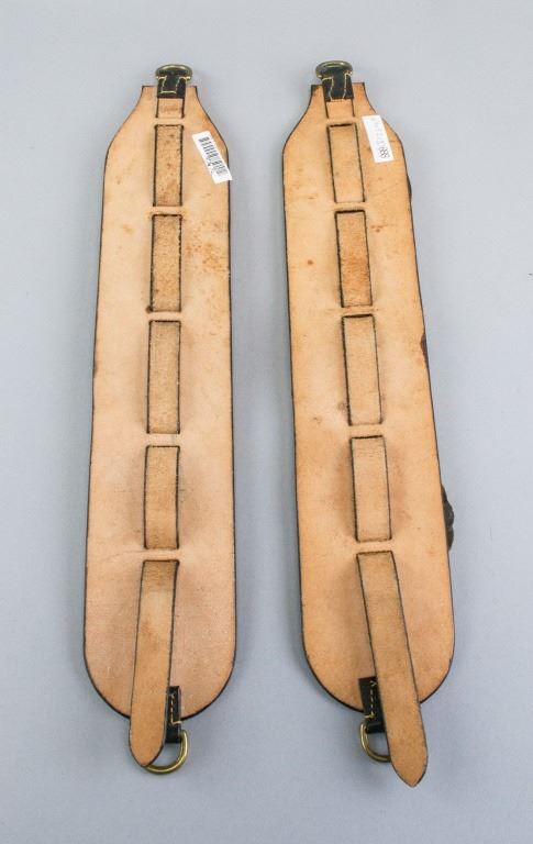 Lot of 2 decorative belts. Of black tone with bronze-colored icons. 44 x 8 cm, 743 grams.