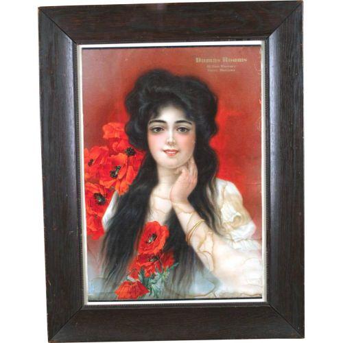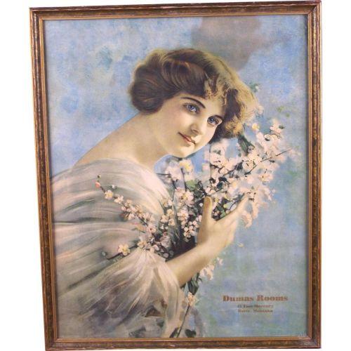 Lot of 2 Dumas Rooms prints from a brothel in Butte, MT depicts pretty girls with flowers 17" x 21"