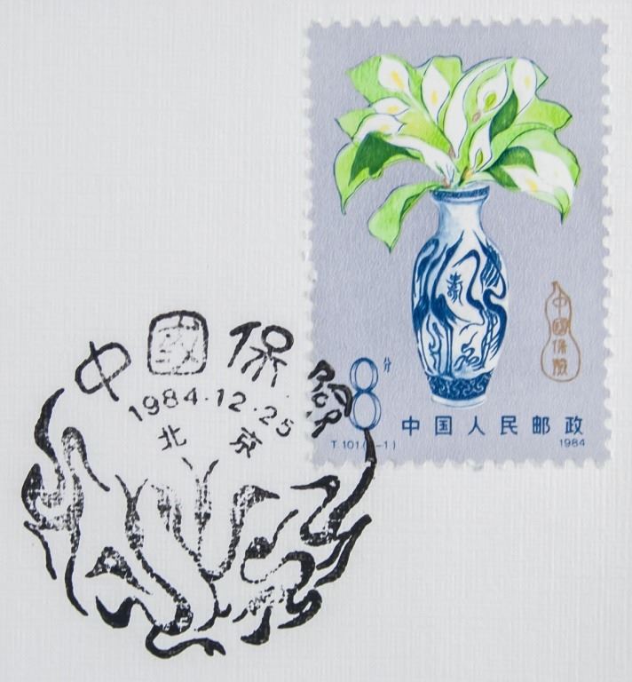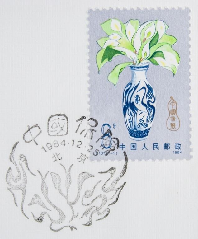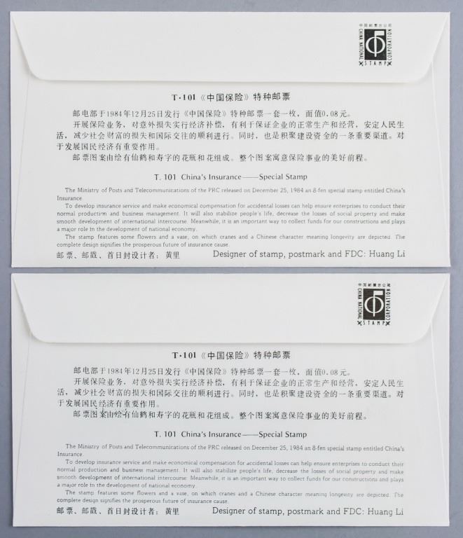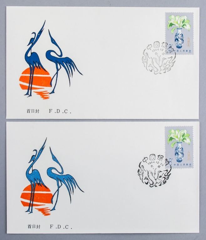 Lot of two Chinese envelopes with stamps. Two herons stamped on front, one pair with printing error - lighter in color. Issued 1984. In good condition.