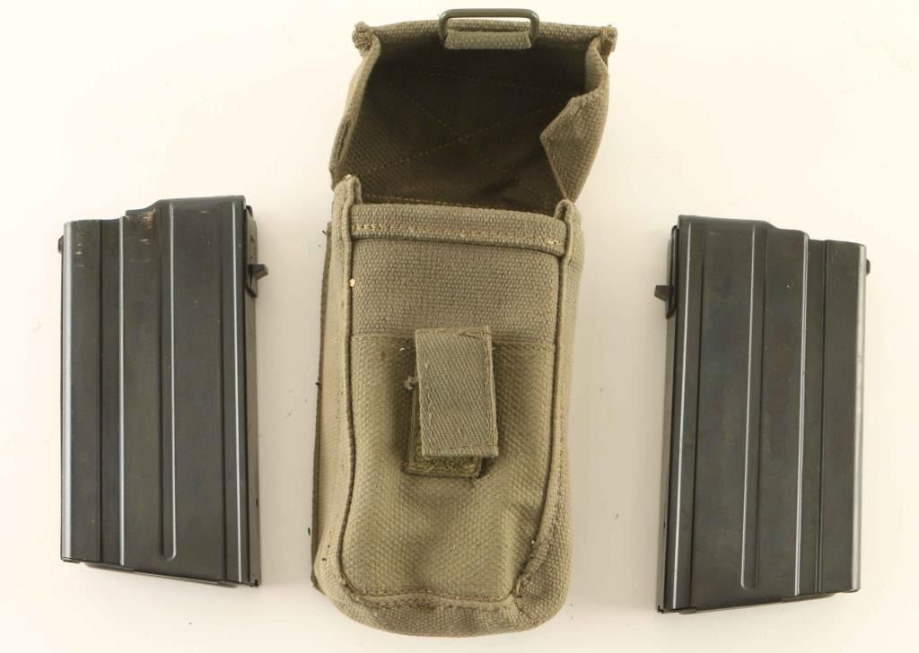 Original Serbian made .308/7.62mm NATO 20 round steel magazines in carry pouch.