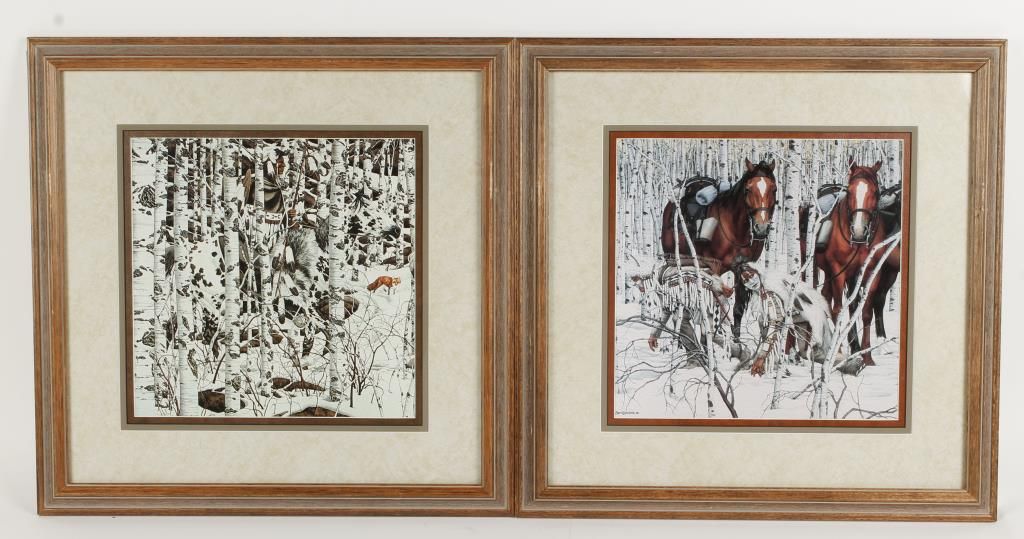 1 of "two Indian horses", and 1 of "woodland encounter", both are triple matted and framed, both measures 10"x10".