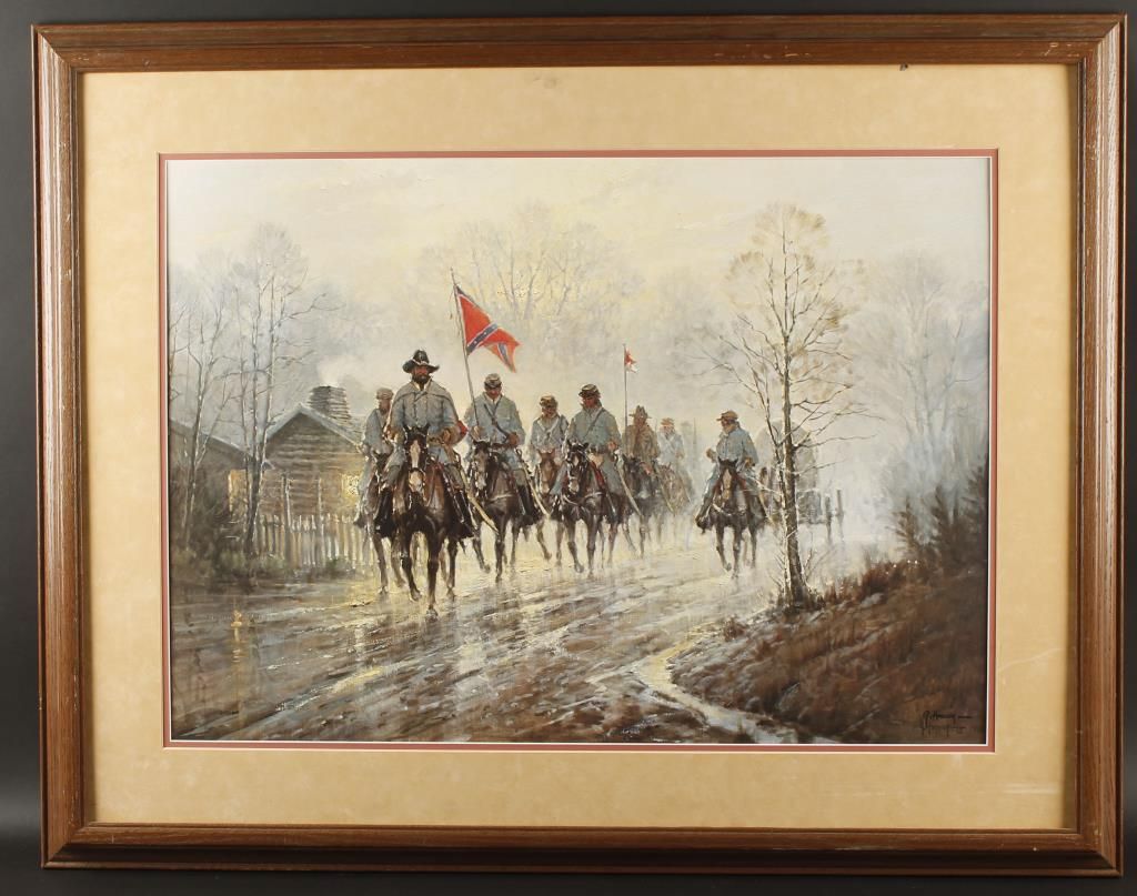 (1) The Guns of Vicksburg by Andy Thomas hand signed and 43/900 (1) Civil War soldiers on horseback by . Harvey (No Glass)