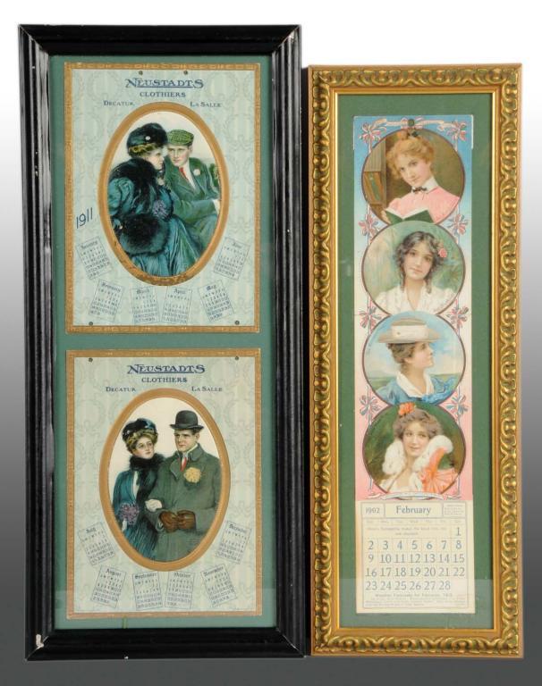 Description Both framed under glass. Includes one 1902 Hood's Sarsaparilla and 1911 Neustadt's Clothiers. Only a few minor marks with one fold mark on the Hood's Calendar. Condition (8.5, Excellent). Size Both: 20" T.