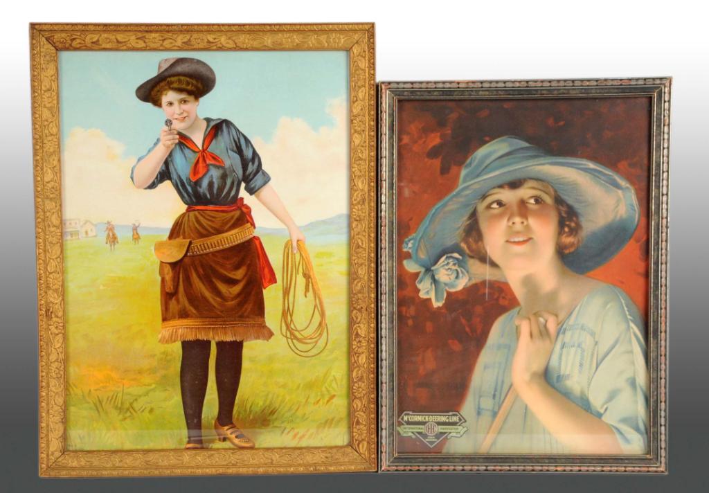 Description Both framed under glass. Includes one McCormick-Deering and cow girl, marked but illegible. Only minimal marks or wear. Condition (9.0, Near Mint). Size Both: 11" x 15".
