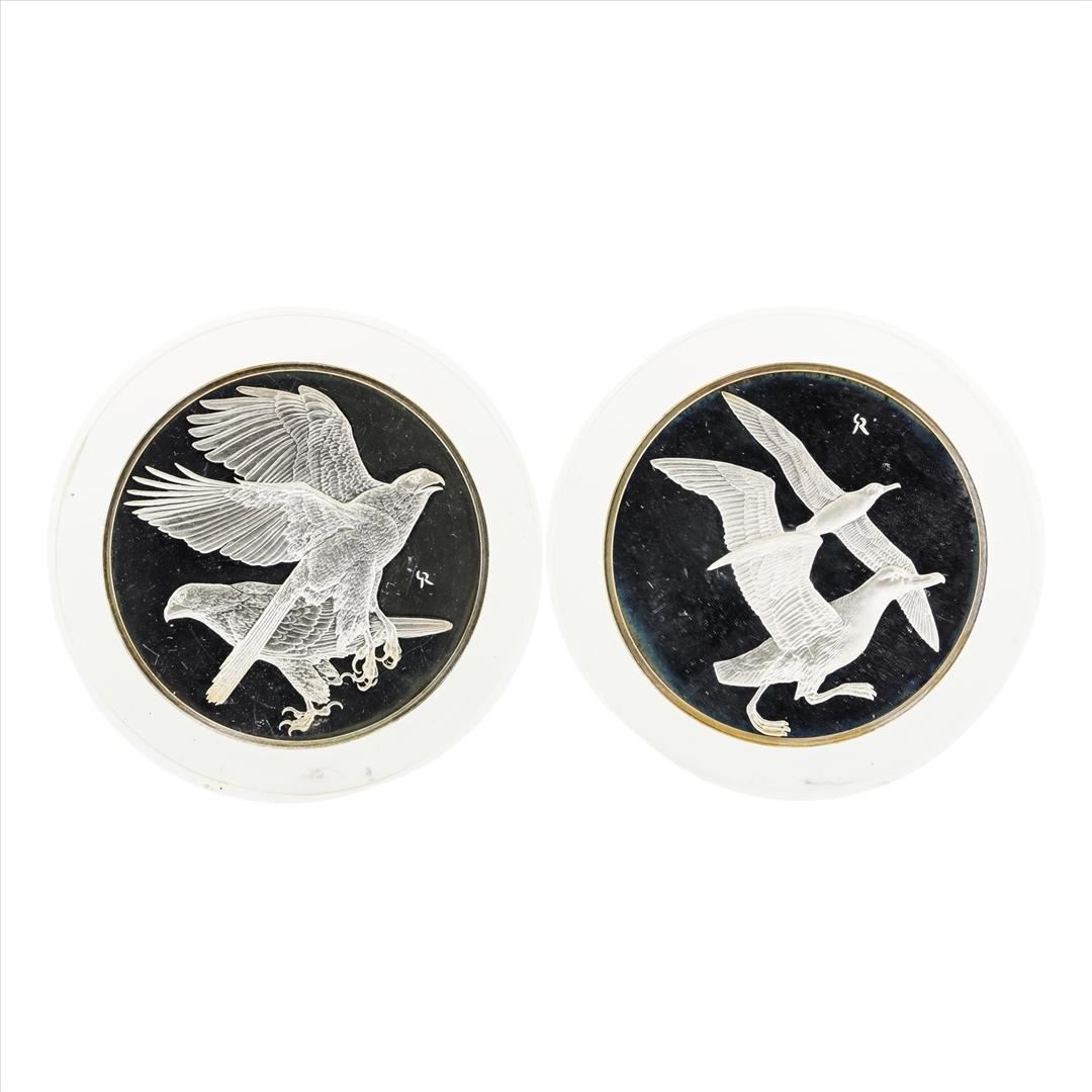 One Lot of (2) Franklin Mint Goshawk and Albatross Art Medals. The total weight of each medal is 1000 grains which is approximately 2 troy ounces of sterling silver.