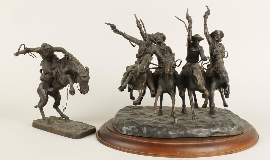Includes a spelter 8"x9" "Coming through the Rye", and a 4"x6" "Bronco Buster".