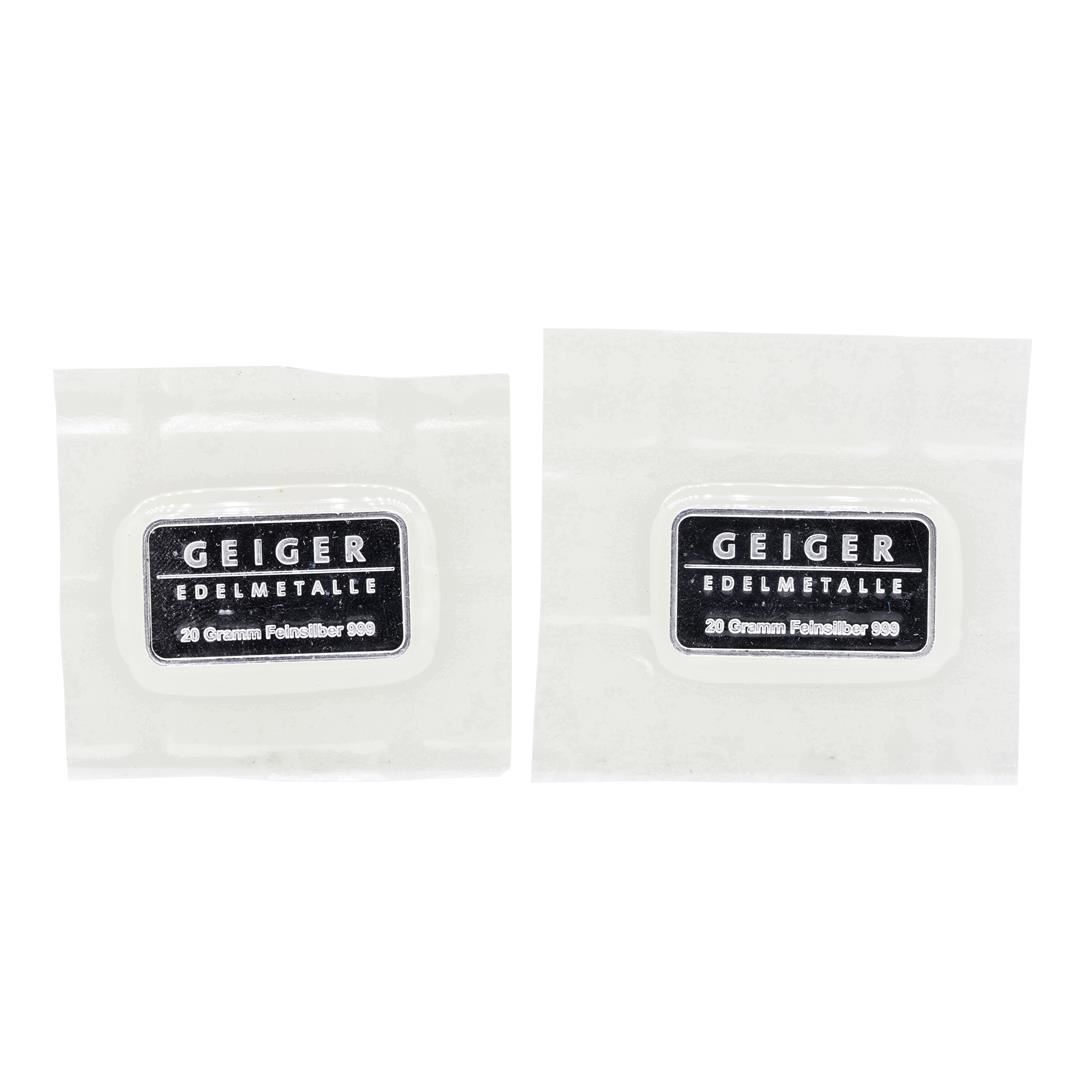 One Lot of (2) Geiger 20 Gram .999 Fine Silver Bars.