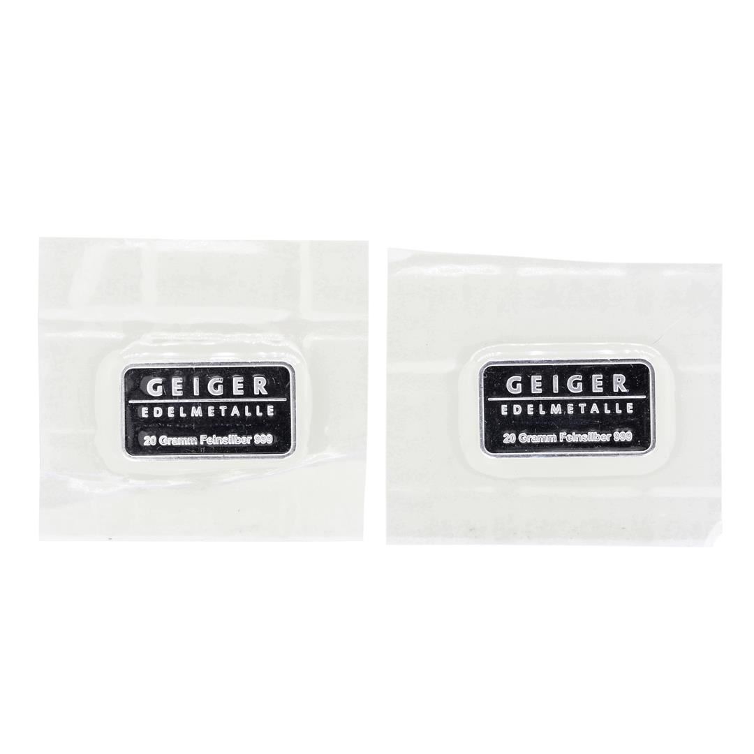 One Lot of (2) Geiger 20 Gram .999 Fine Silver Bars.