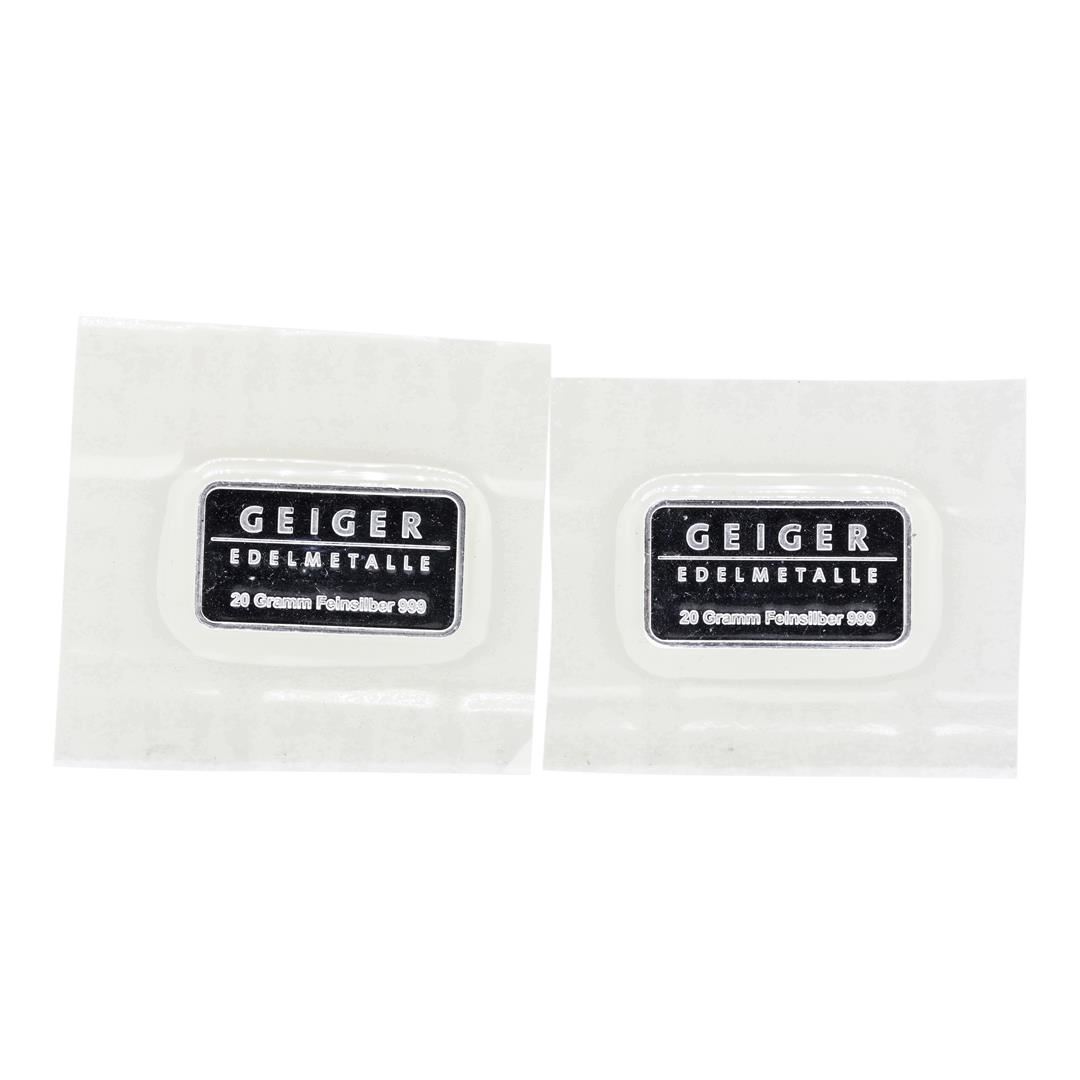 One Lot of (2) Geiger 20 Gram .999 Fine Silver Bars.