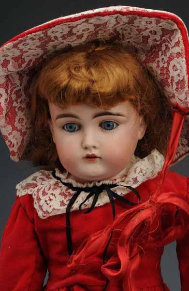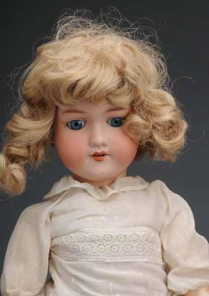 Description Germany, Ca. 1900. Bisque socket head incised "Armand Marseille 390n", new glass eyes have fallen out, open mouth, replaced wig, jointed composition body (refinished hands and legs), vintage fabric dress and baby shoes. Bisque shoulder head incised "11", made by J. D. Kestner, set blue eyes, open mouth, replaced wig, kid body with bisque lower arms (much tape used on knees and thighs), dressed. Condition (Fair). Size Largest: 25" T.