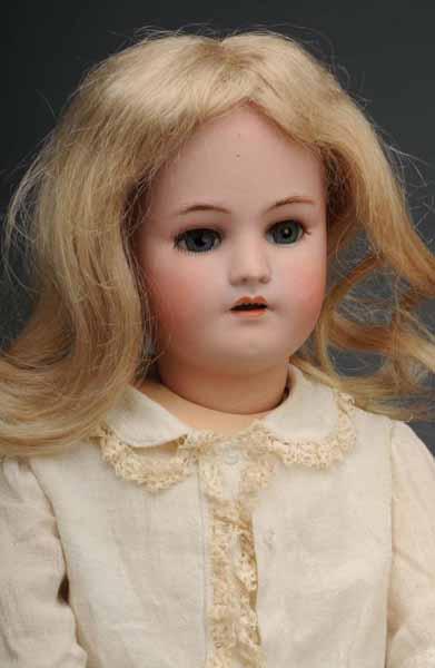 Description Germany, Ca. 1900. Bisque socket head incised "Heinrich Handwerck" (repaired in back), set glass eyes, replaced wig, open mouth, jointed composition body (repainted), vintage dress and undies. Bisque head incised "A.M. 390", set glass eyes, open mouth, replaced mohair wig, jointed composition body (repaired unpainted finger), dressed with vintage shoes. Condition (Good). Size Largest: 26" T.