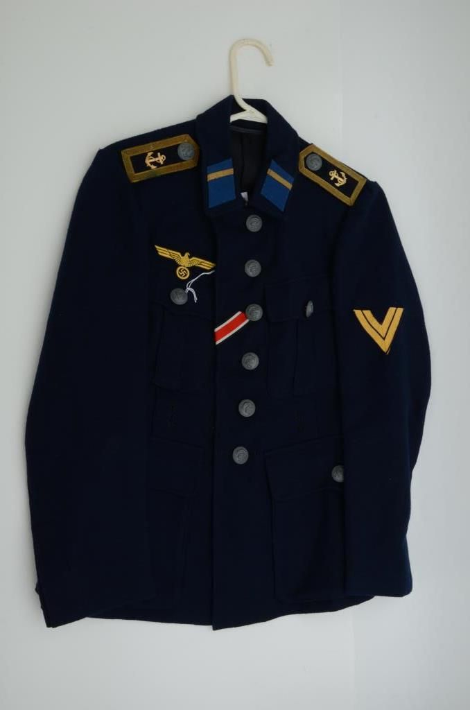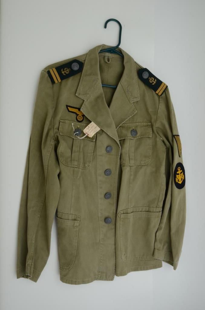 Lot of 2 German Naval jackets; one a Tropical 4-pocket tunic, the other a blue Peacoat, both in good overall condition. Est.: $150-$250.