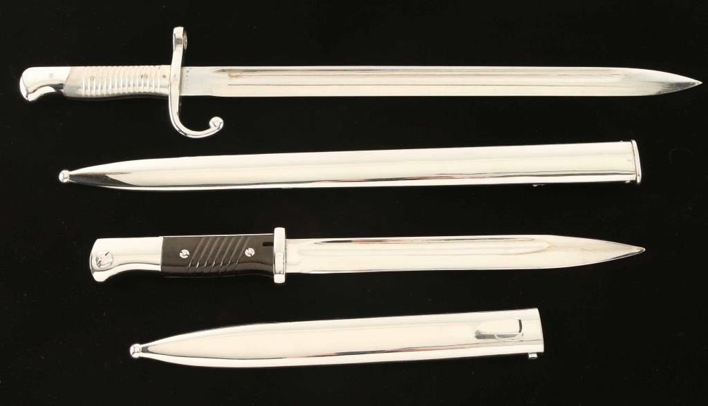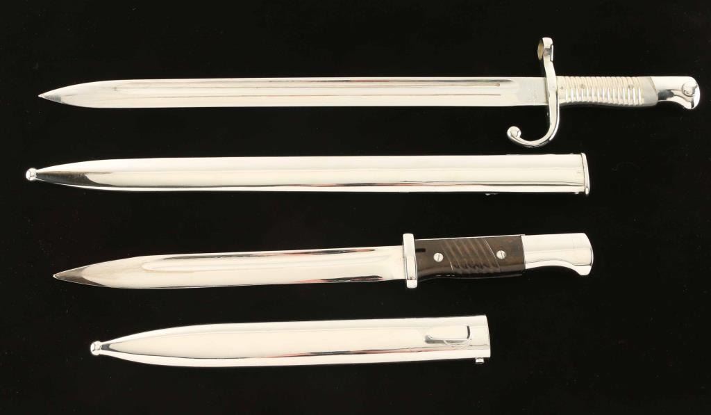 Chrome plated for parade early example for S. American contract Mauser, Both with scabbards.