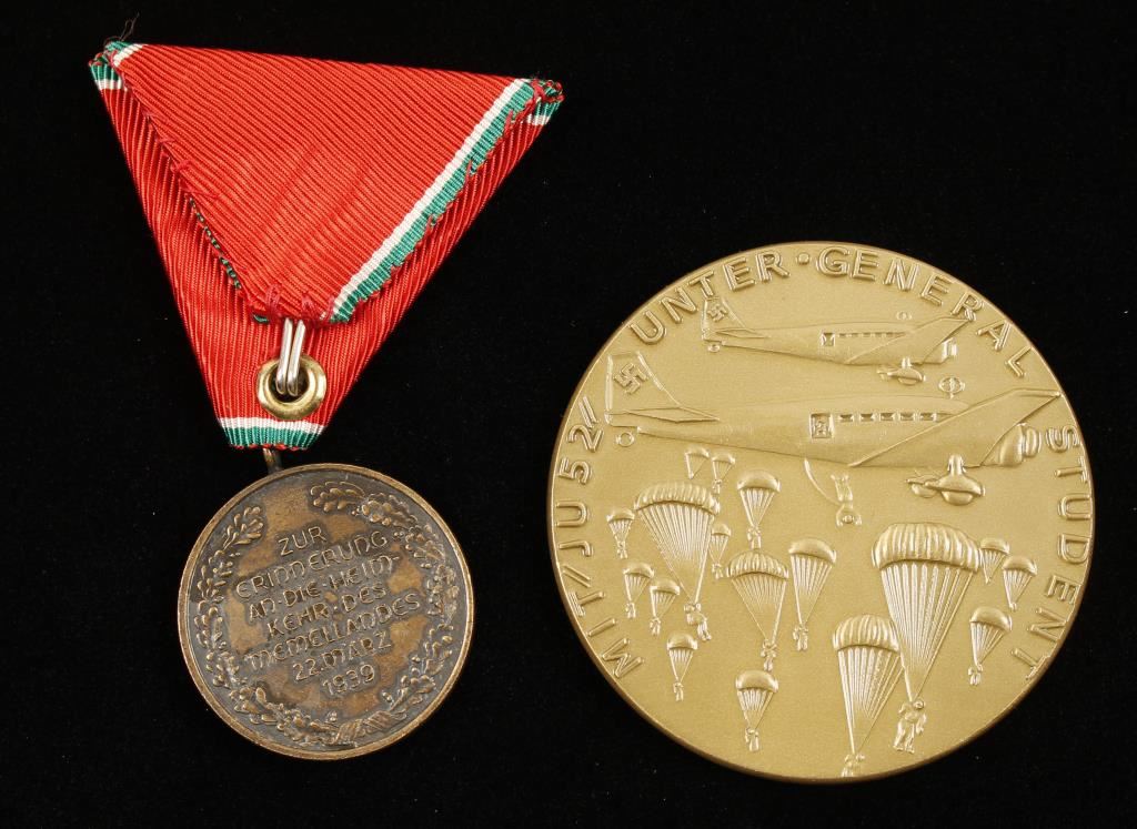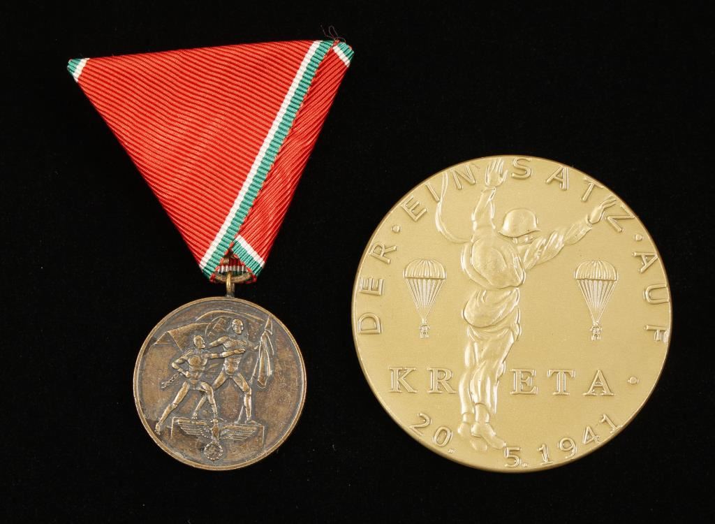(1) March 1939 Memel Lands Decoration that includes the triangular issue ribbon. (1) Luftwaffe 1941 Paratrooper KRETA Table Award. Measures 2 1/4" in diameter, bronze construction. Offered "as is", we don't guarantee the authenticity of this item, please do your research. All sales are final.