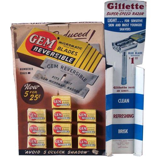 Lot of 2 Gilette Razor Items Display Rack (16 x 4) and a Card of Razor Blades in original Box