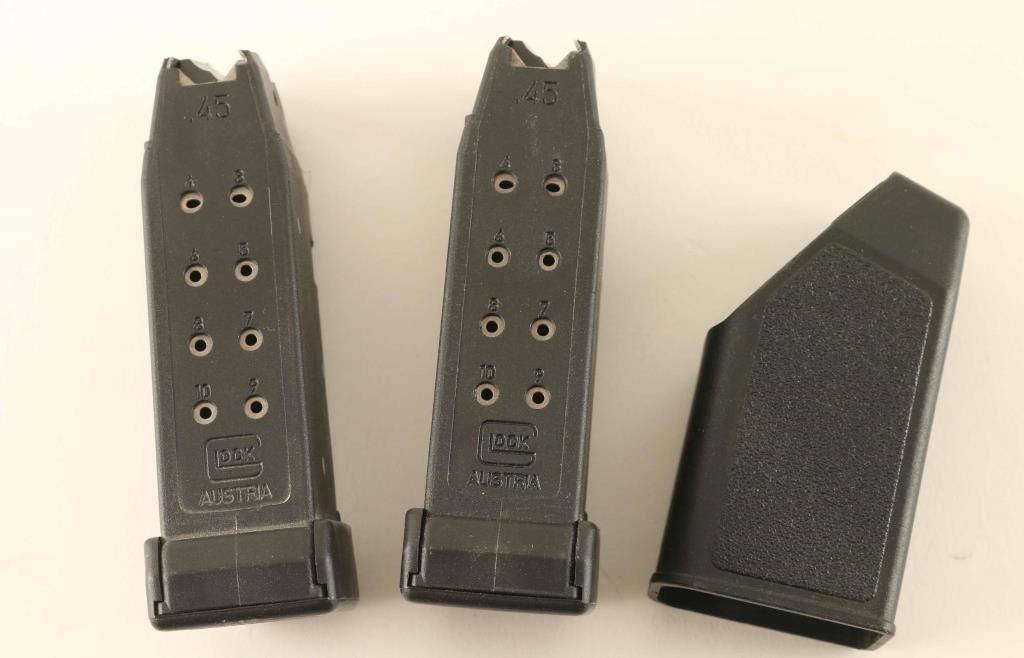 10 Rd mags and a speedloader in .45 in a Glock 30 .45 Cal lid.
