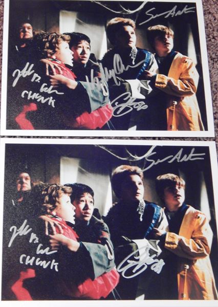 You are bidding on a lot of two 8x10 photos signed by the cast of "The Goonies." This item comes with a Certificate of Authenticity guaranteed for the life of the piece.