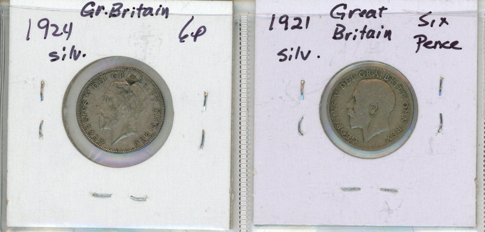 Lot of 2 Great Britain Silver 6 Pence:  1921 & 1924