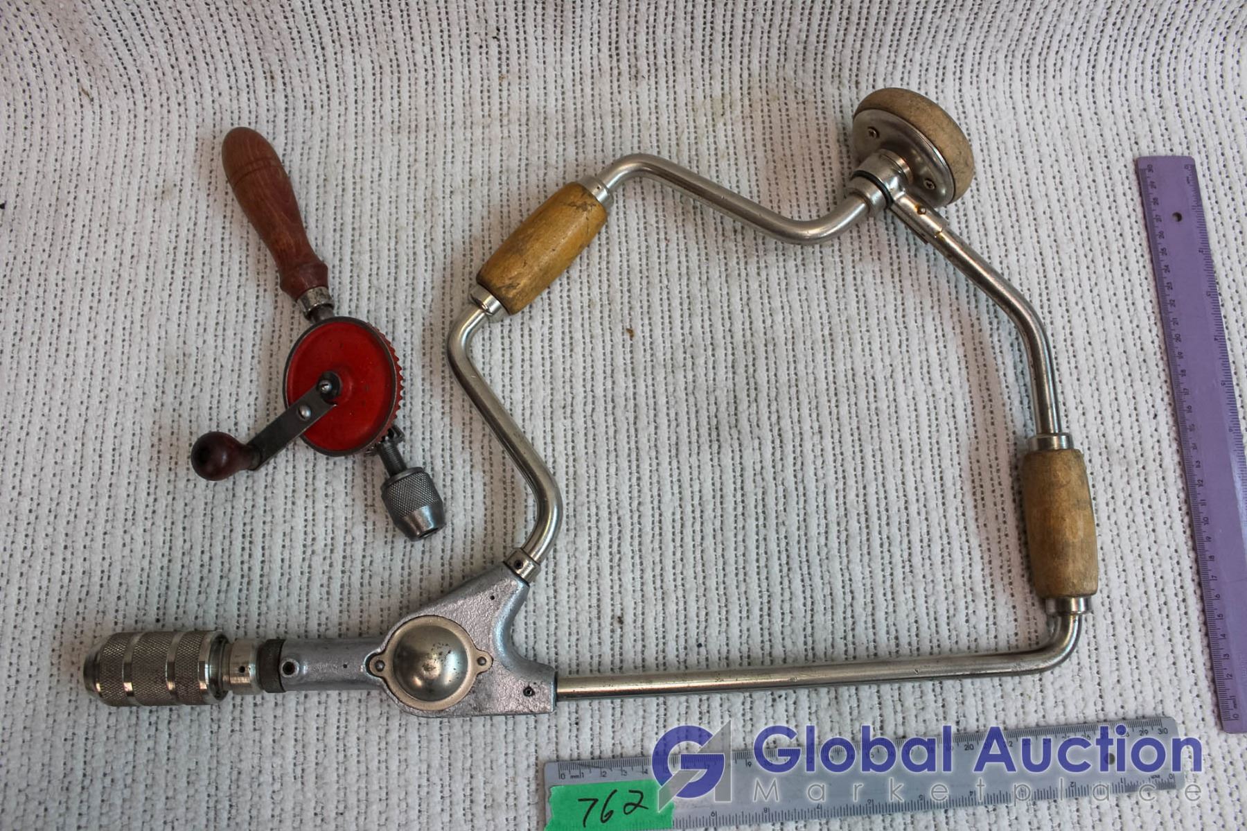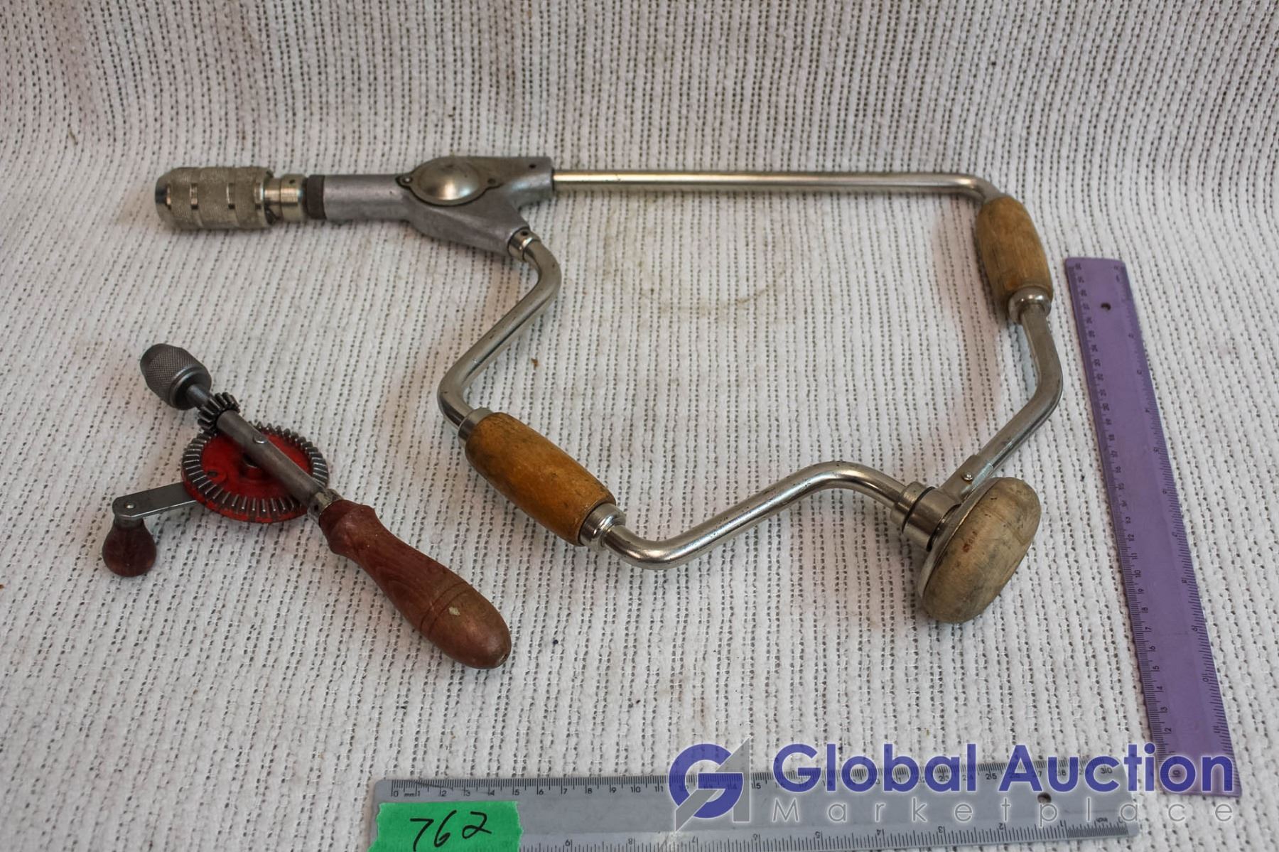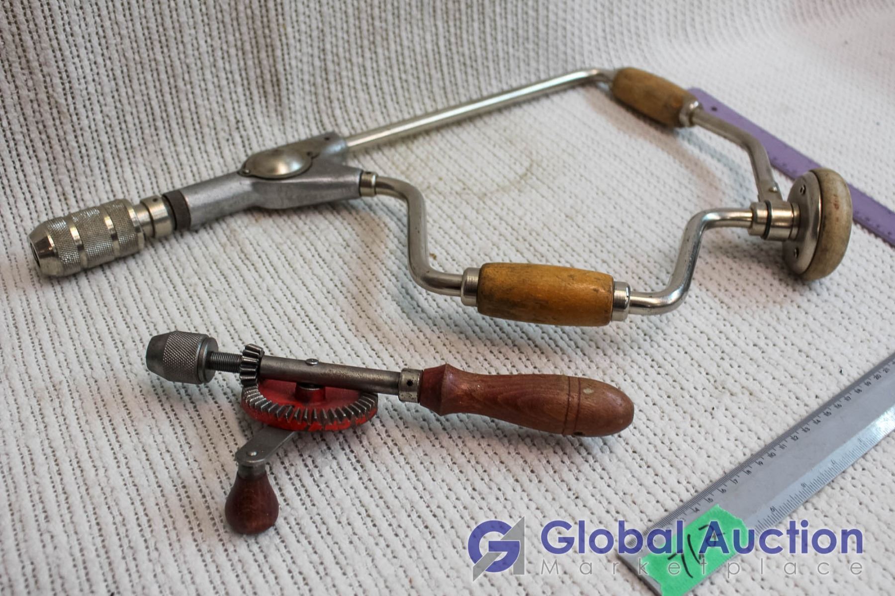 Lot of 2 Hand Drills, 1 Small, 1 Larger with Handle