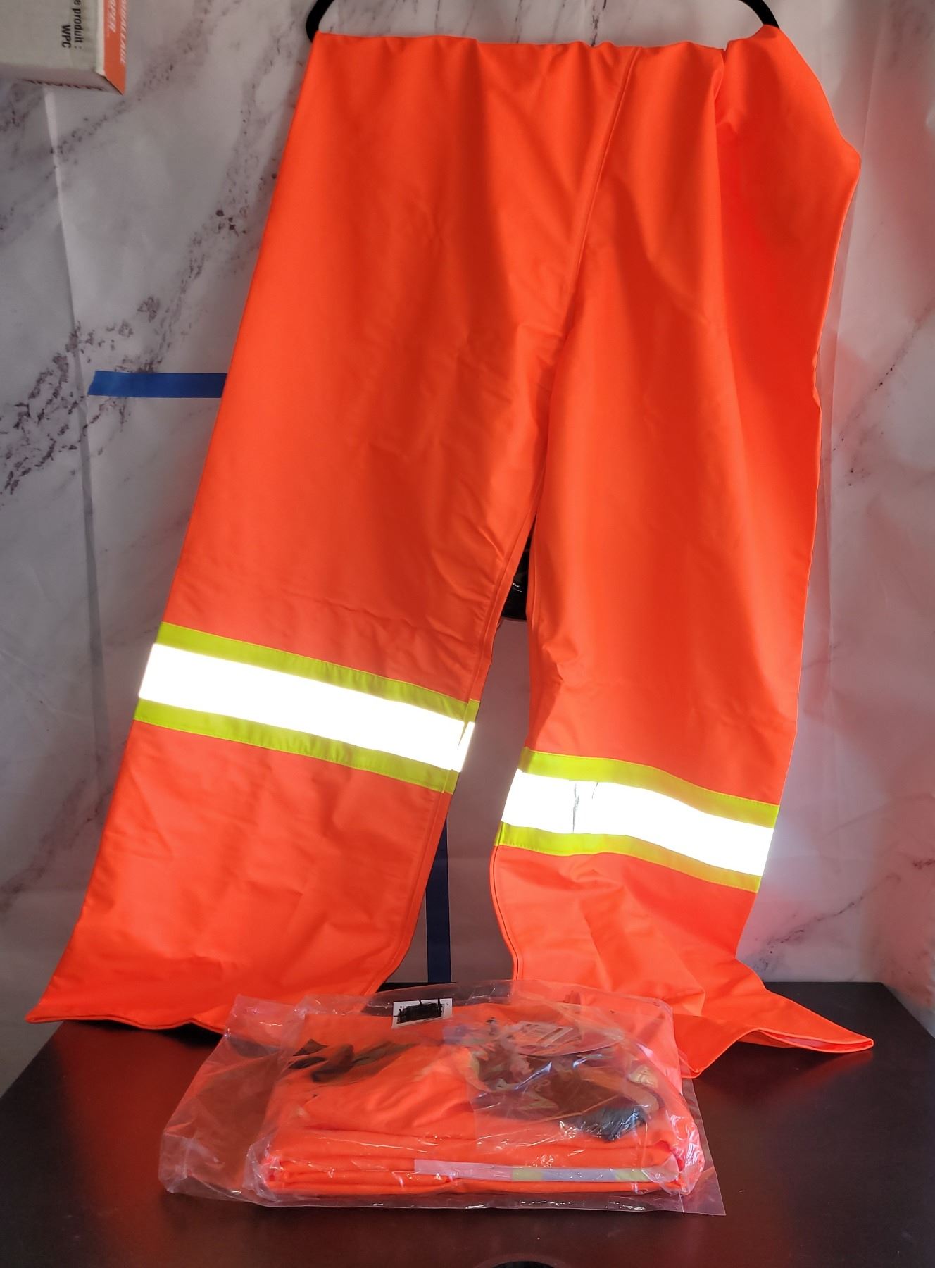 Lot of 2 Hi Viz Rain Coverall Bibs - Size Large & XL