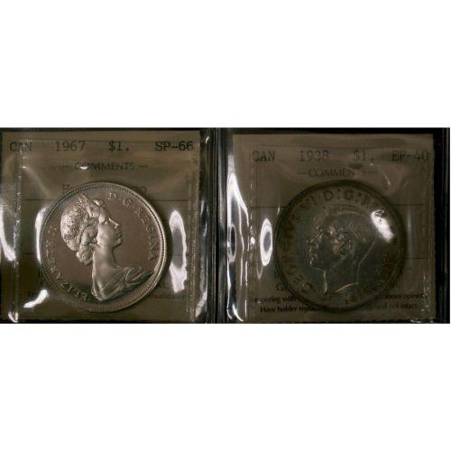 Lot of 2 ICCS Silver dollars; 1938 EF-40, 1967 SP-66 HEAVY CAMEO