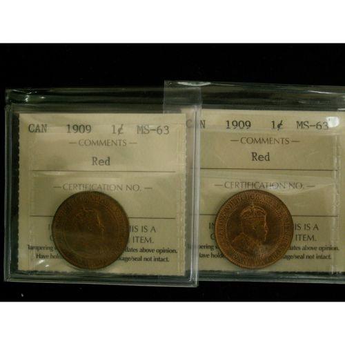 Lot of 2 ICCS graded 1¢ 1909 MS-63 RED (2),