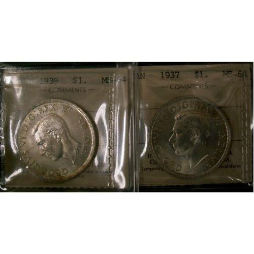 Lot of 2 ICCS graded $1; 1937, 1939, All MS-64,