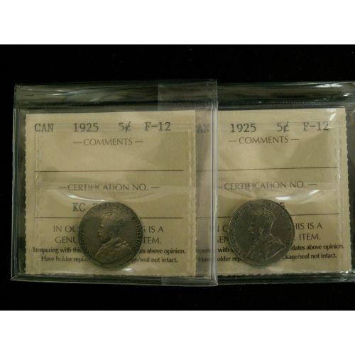 Lot of 2 ICCS graded 5¢ ; 1925 F-12 (2),