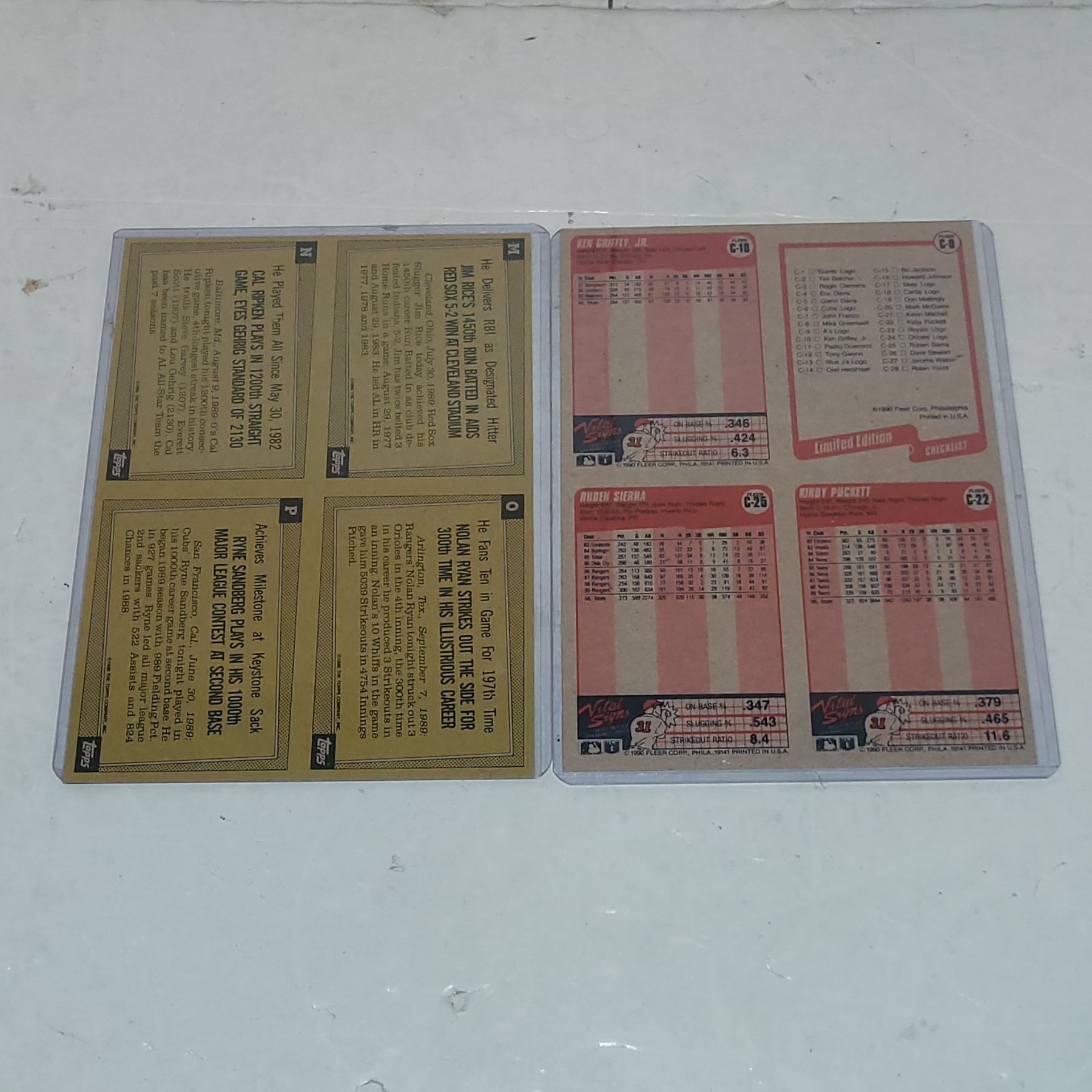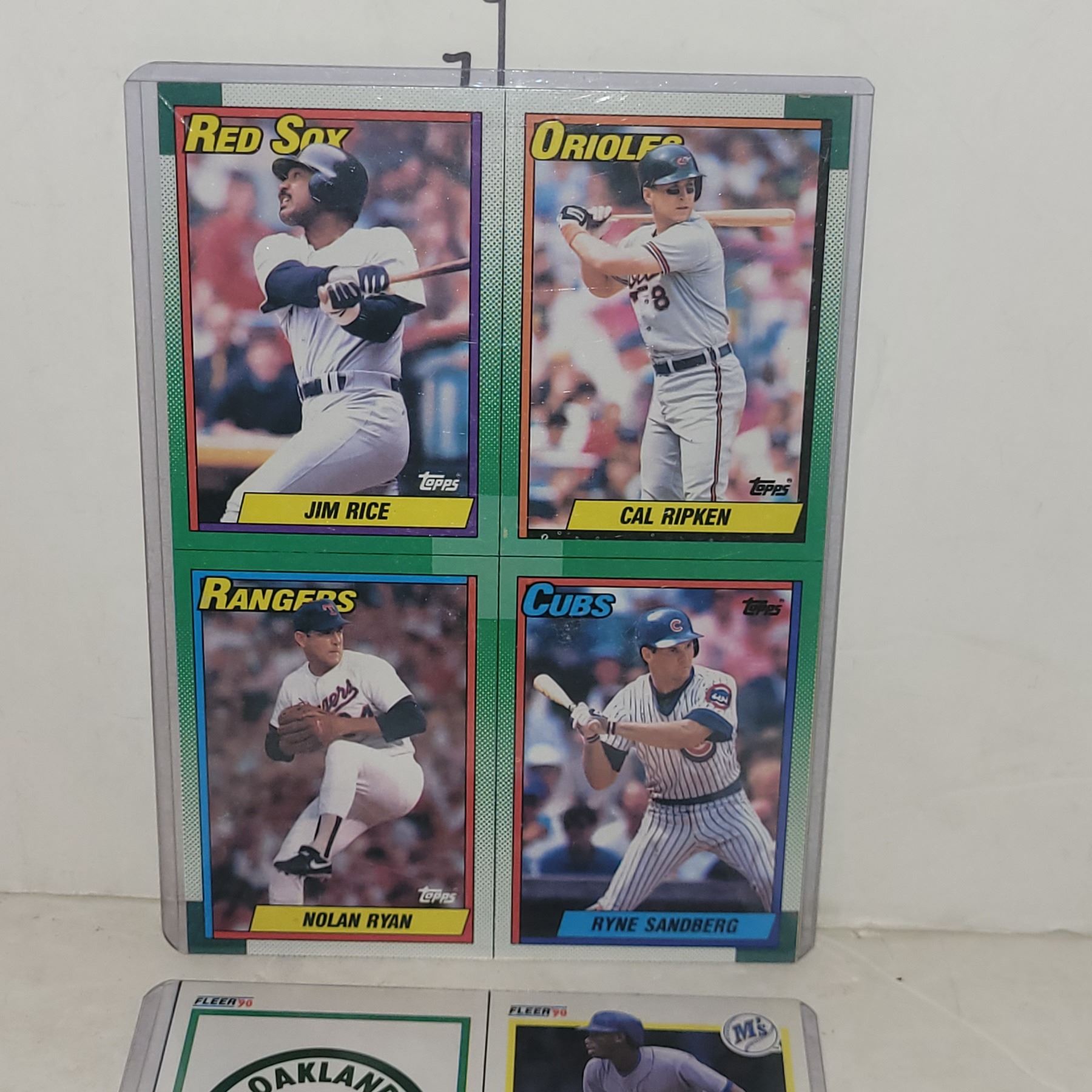 Lot of 2 Intact MLB Fleer & Topps Box Bottoms ... Ken Griffey Jr, Kerby Puck, Noaln Ryan