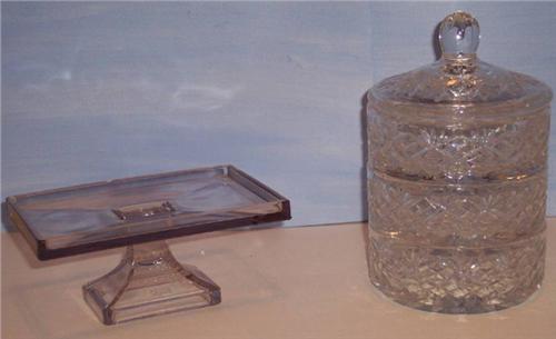 Lot of 2 Items: Candy Dish & Gum Receiver Clark's Teaberry Gum Dish and a Lead Crystal 3-Tier Candy Dish (Very Unusual Size)