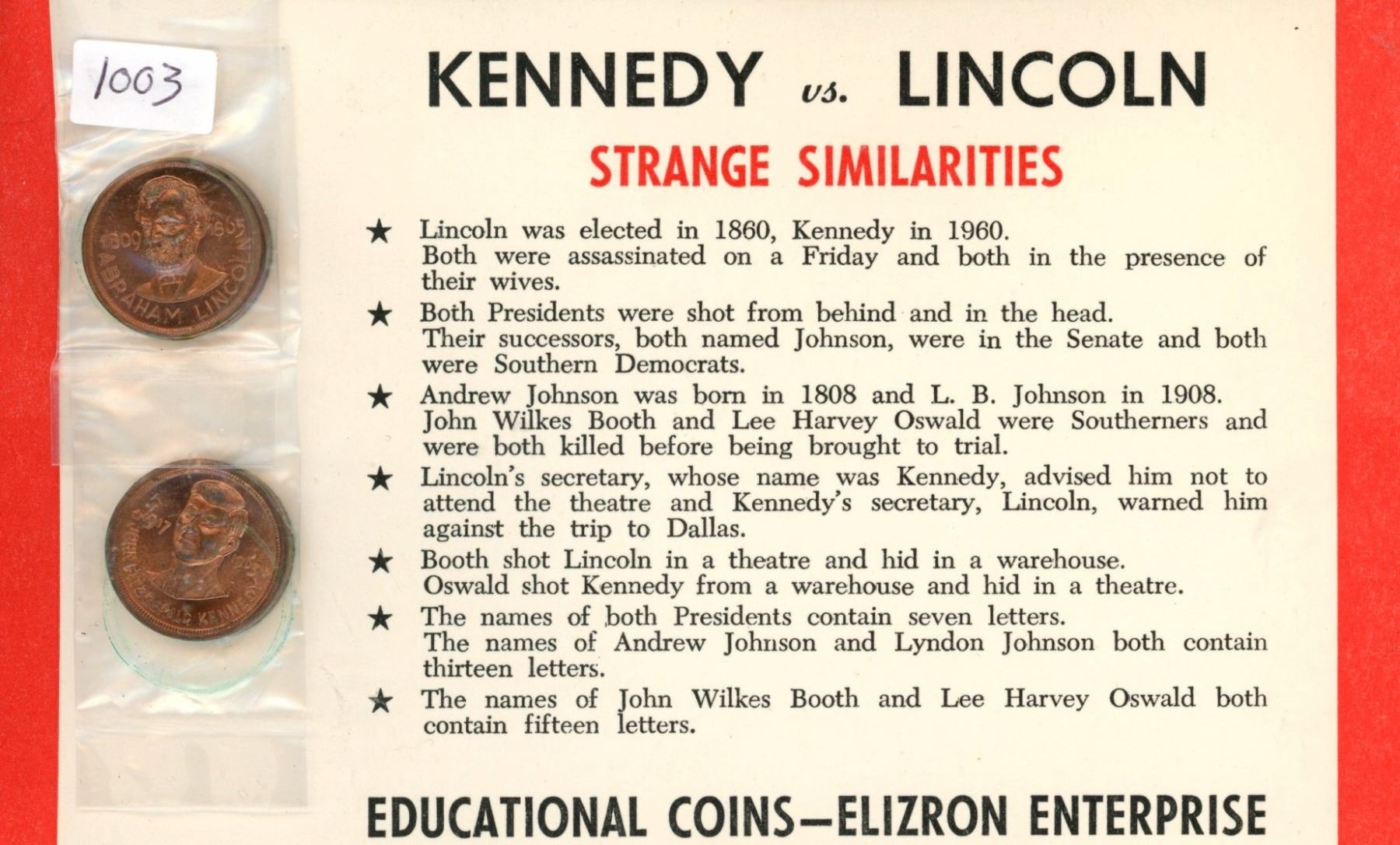 Lot of 2 Kennedy vs Lincoln Strange Similarities bronze medals. Interesting similarities.