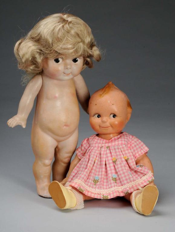 Description Largest is a carnival-type composition Kewpie of an unknown age and origin wearing a replacement wig. Also includes a Kewpie O'Neill doll with considerable crazing throughout. Condition (Fair - Good). Size Lagest: 13" T.