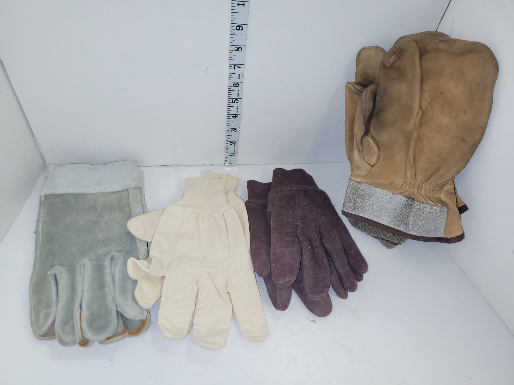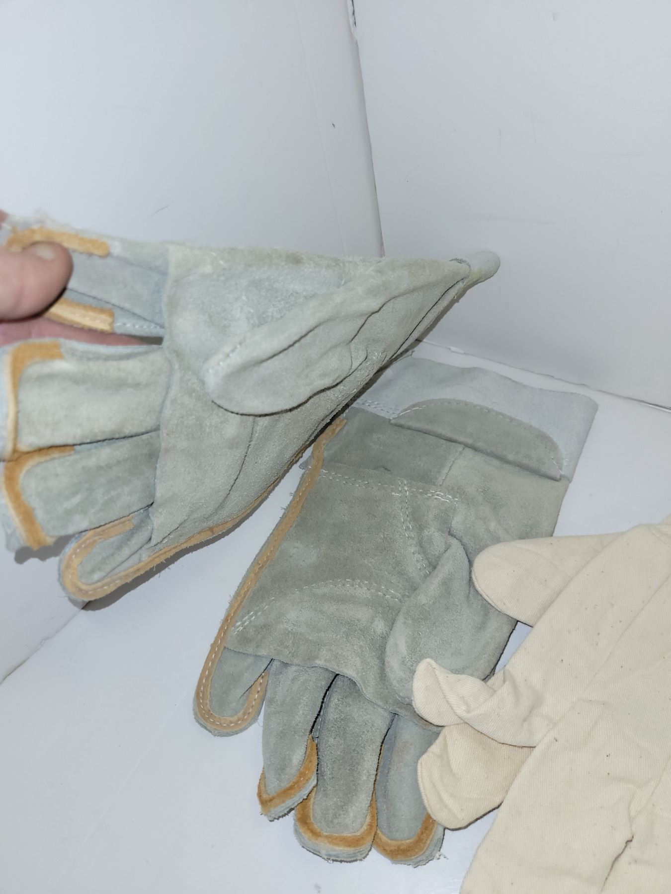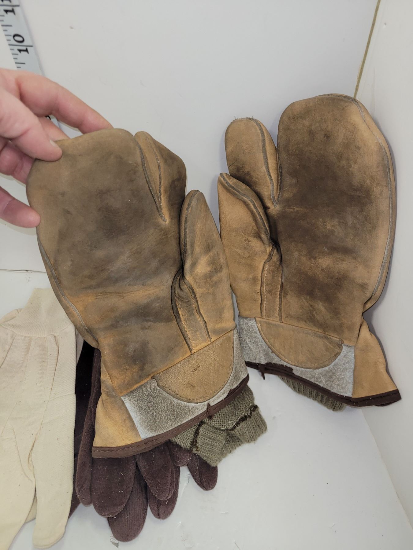 Lot of 2 Leather Work Gloves/Mittens + 2 Liners