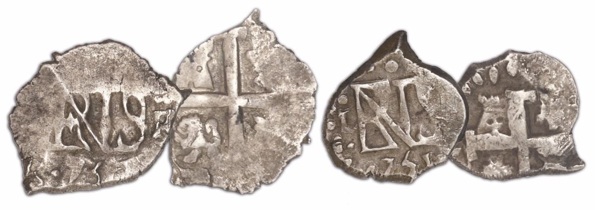 Lot of 2 Lima, Peru, cob 1/2R of Ferdinand VI: 1750R and 1751R. 3.62 grams total. Bold full monograms and clear dates (rare), lightly toned XF.