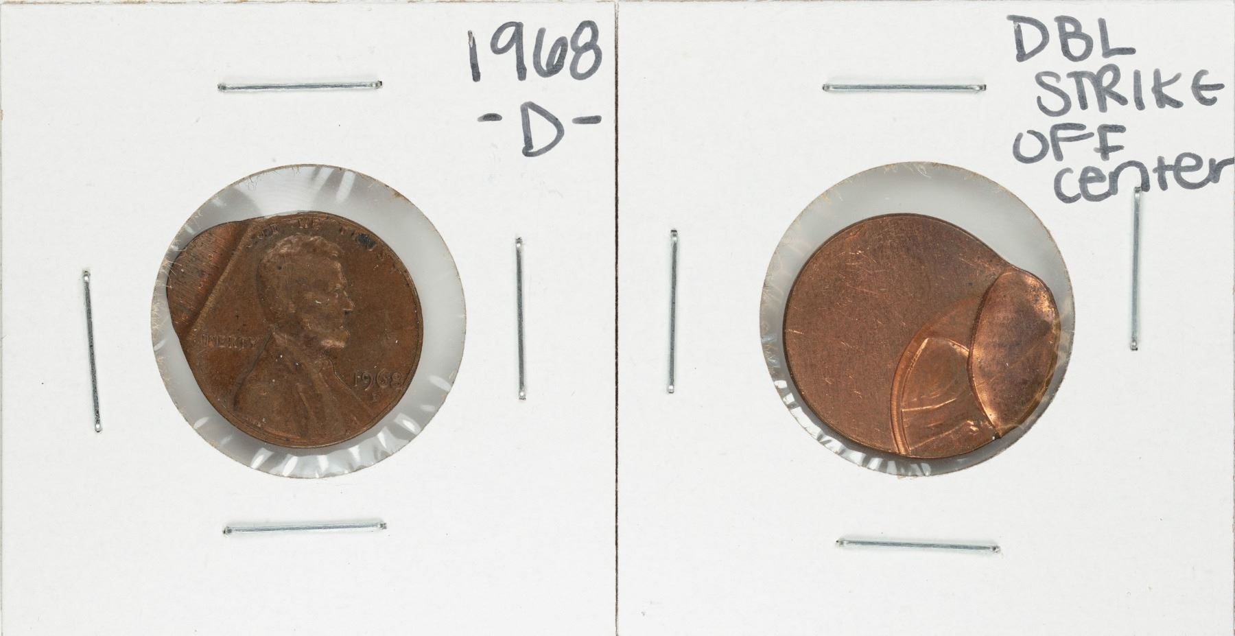 One Lot of (2) Lincoln Cent Off Center Strike Error Coins.