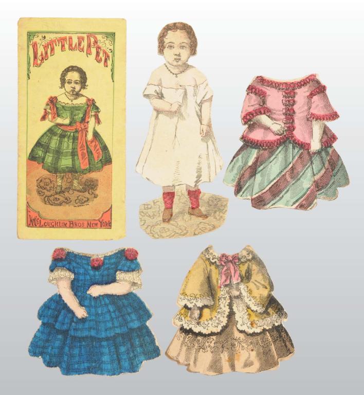 Description ND. From the Clark, Austin, Smith "Girl's Delight" Series, "Little Pet". Contains a 3-inch doll with five outfits and a folder. Both sets are in fine condition.