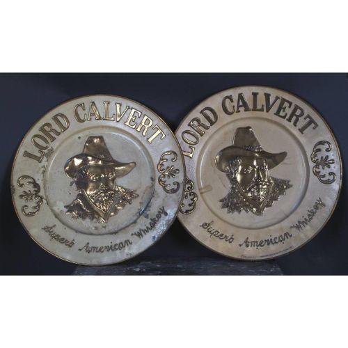 Lot of 2 Lord Calvert tin Chargers 23" diameter