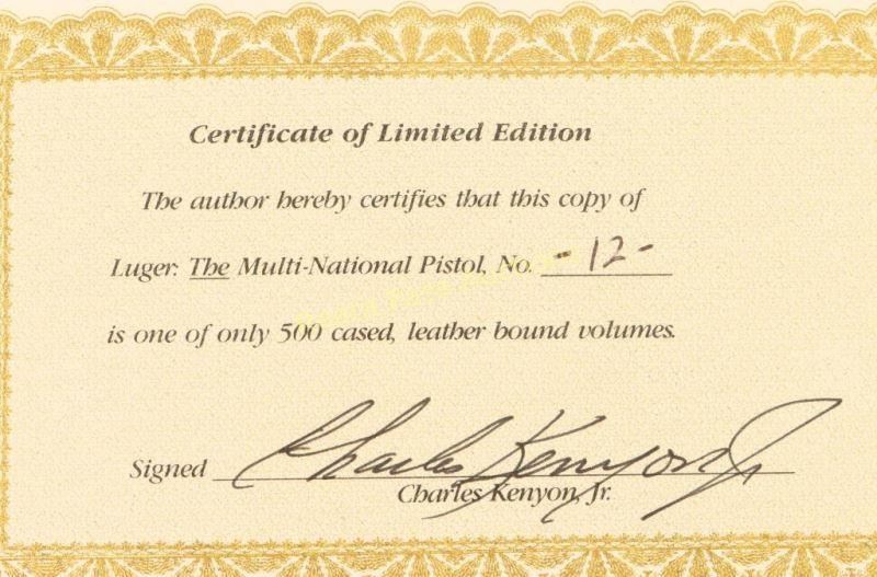 "World of Lugers Proof Marks" by Sam Costanzo Vol. 1 signed by author, and "Luger: The Multi-National Pisto" by Charles Kenyon Jr., signed by author deluxe edition 12/500