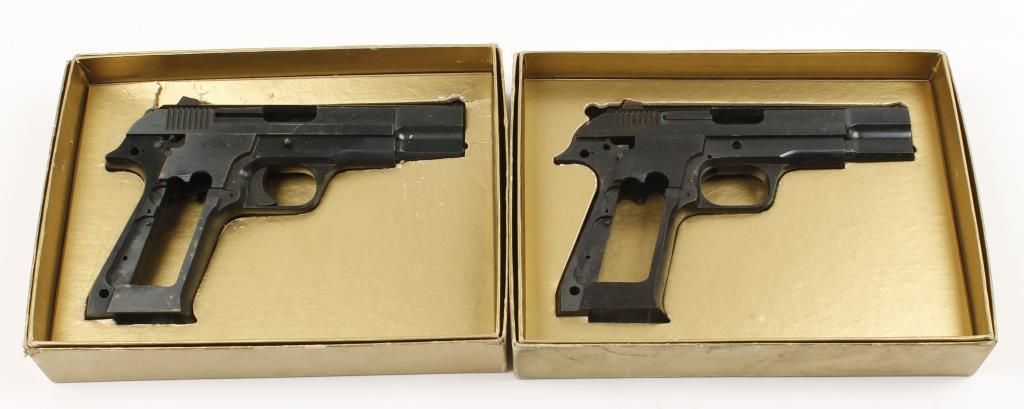 Two French semi-auto pistols. Both are stamped HOWCO Dist. Inc. and "St. Etienne". Neither is complete. One (SN:611463) has no grips, barrel or hammer at least. The other (SN:612073) is missing more than that. Both have spots of surface rust. *MUST BE REGISTERED*