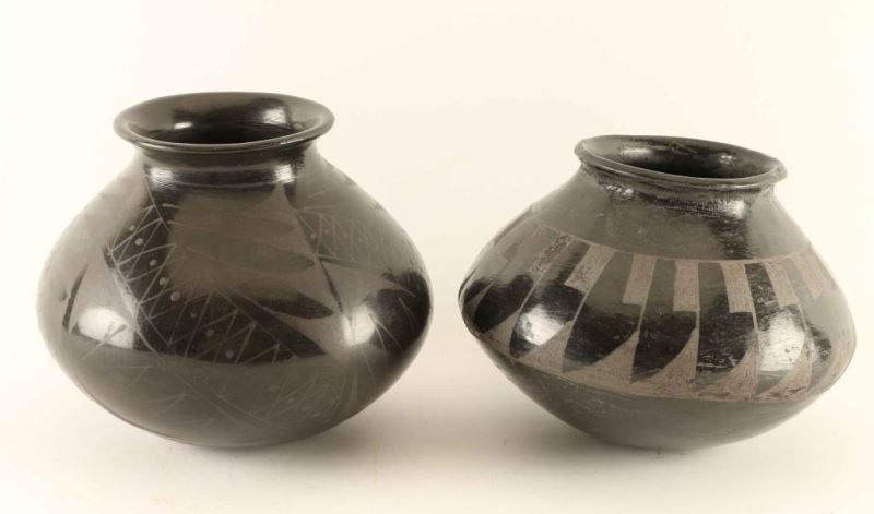Both with geometric designs, measure 6"x8" and 7"x8" signed but illegible.