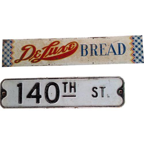 Lot of 2 Metal Signs 140th St 6 x 24 " & Deluxe Bread 6 x 28 "