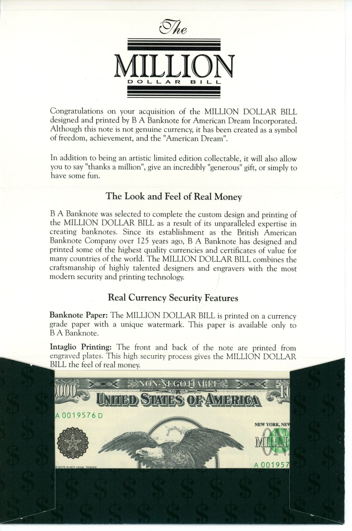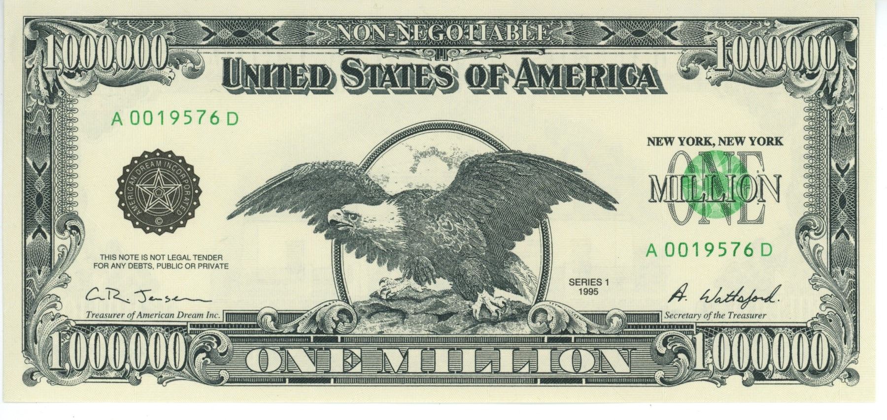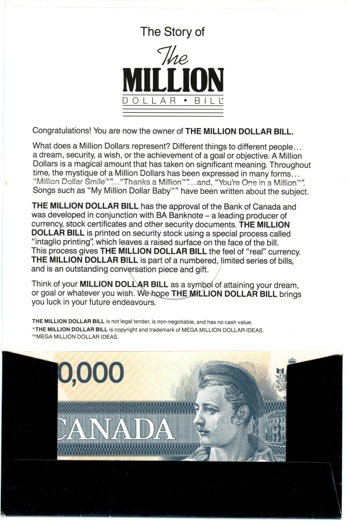 Lot of 2 - Million dollar bills - Canadian and USA