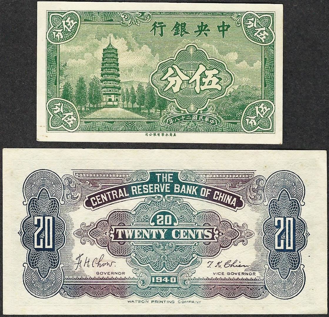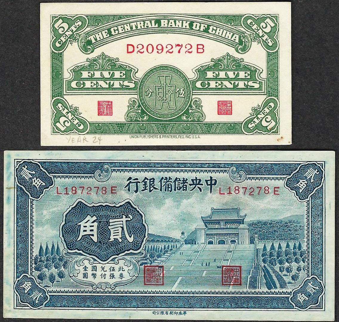 One Lot of (2) Miscellaneous Central Bank of China Currency Notes.