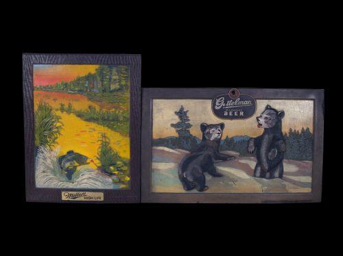 Lot of 2, Molded Advertising Bar Signs: "Two Bears" by Gettleman Brewing Co. & a very rare "Bass Fishing" by Miller Brewing Co. Both Original and in Great Condition 10x13, 10x15