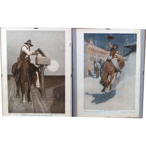 Lot of 2, N.C. Wyeth Creme of Wheat Ads Bronc Buster
