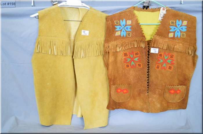 Lot of 2 Native Leather & Buckskin Vests [ one has bead work ]