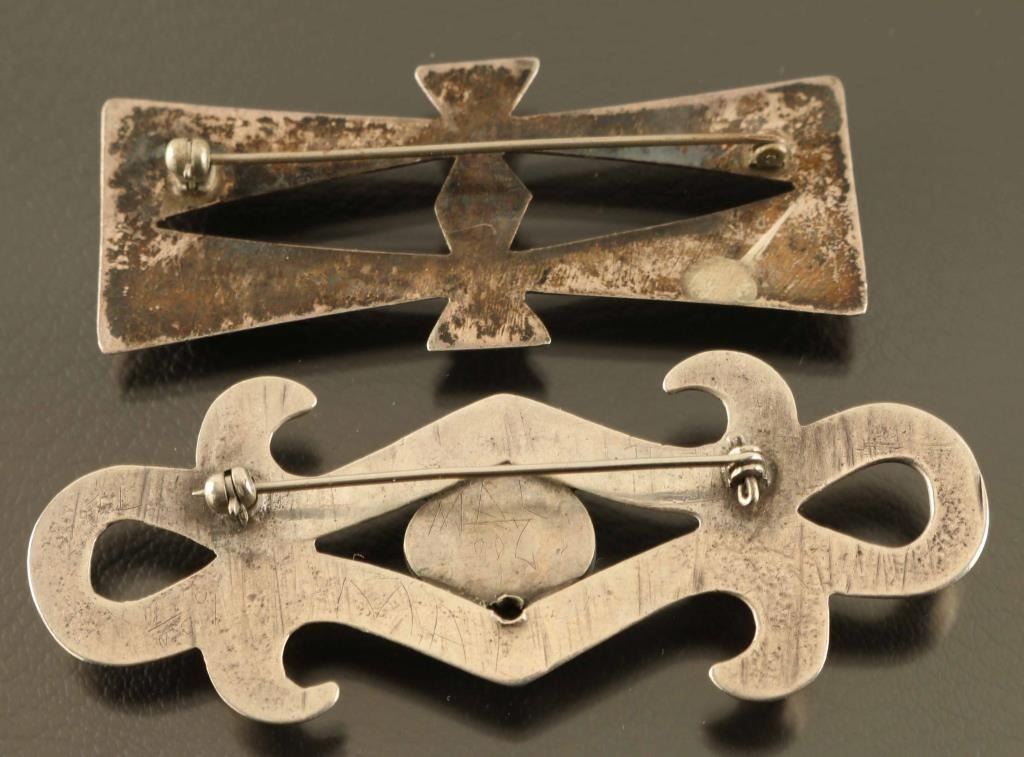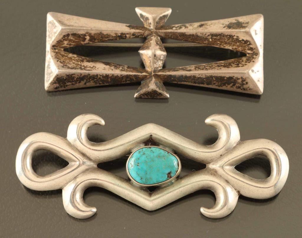 (1) Sterling Cross Pin (1) Sandcast pin with turquoise stone