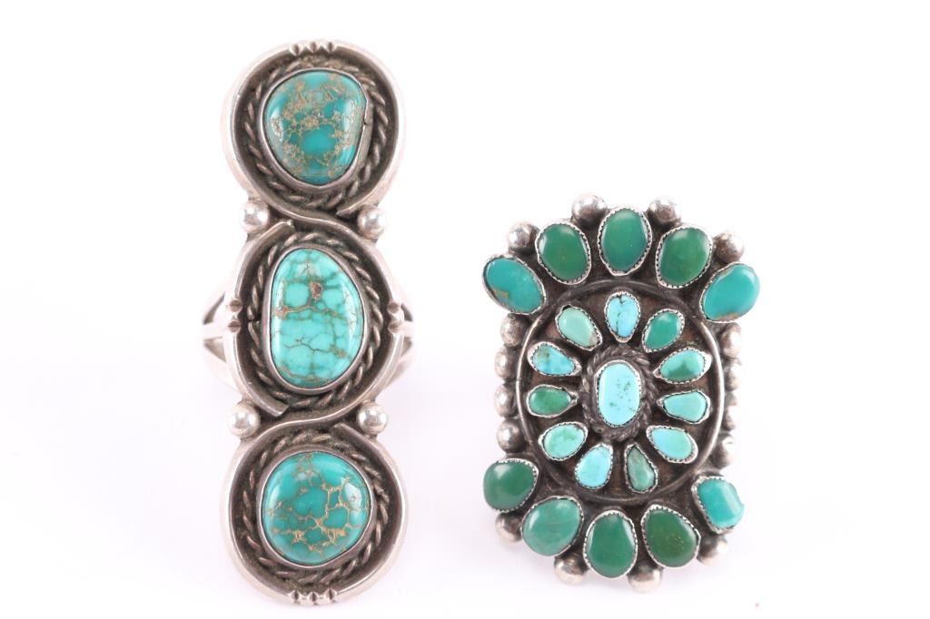 (1) Two tone turquoise cluster ring set in sterling size 9