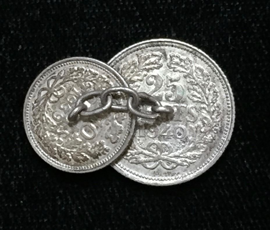 Lot 37; Dates include 1939 Ten Cents,1940 Twenty Five cents,small chain attached.