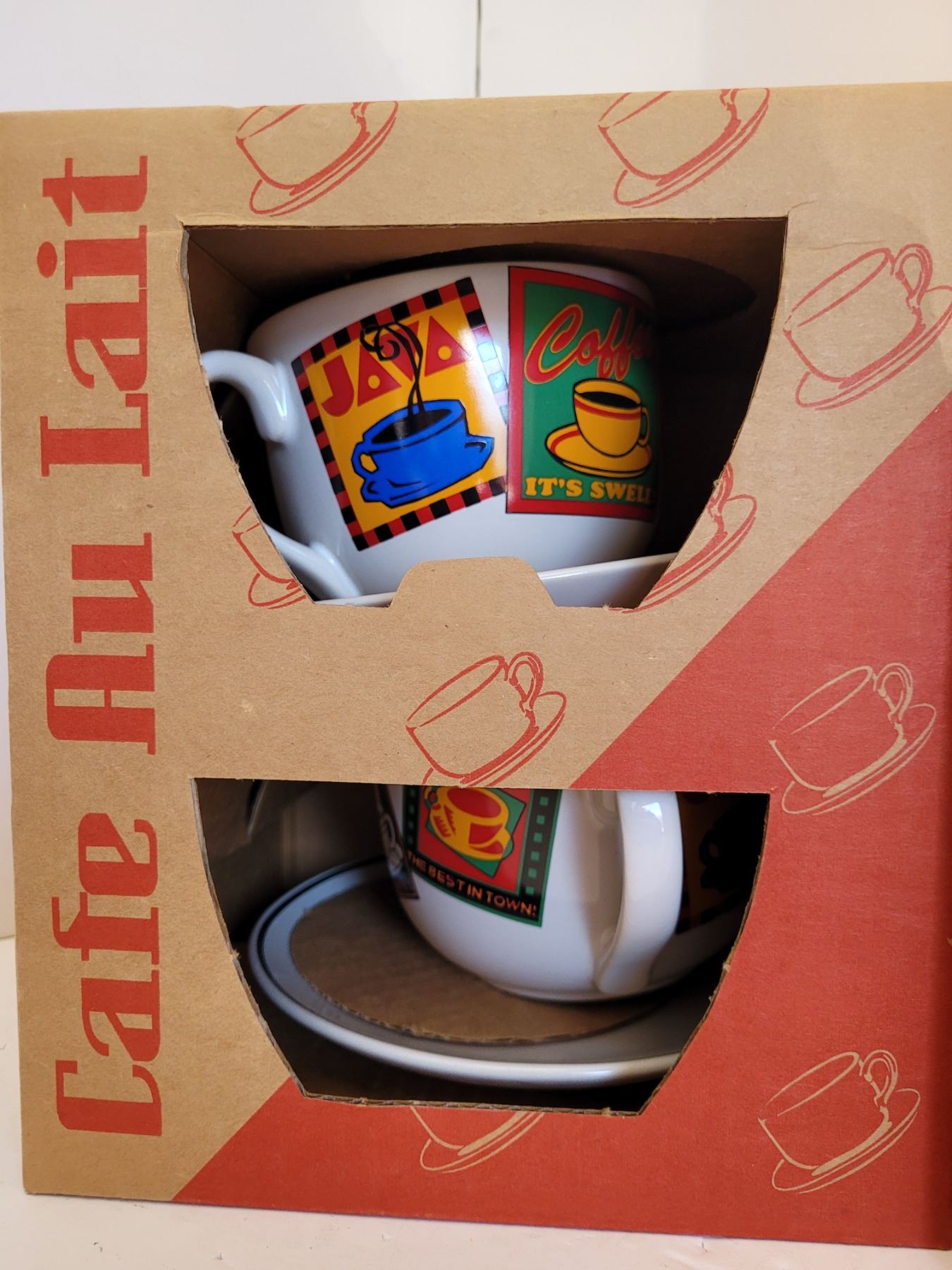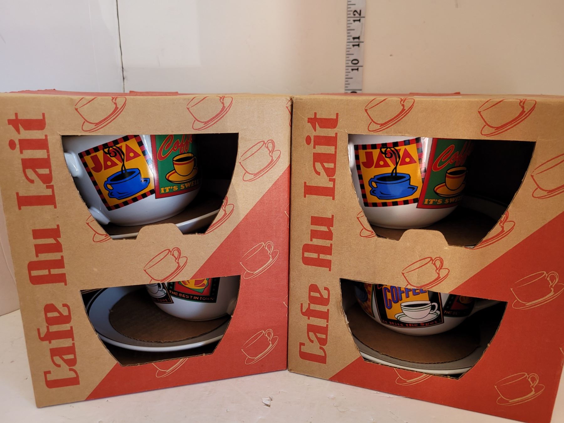 Lot of 2 New Cafe Au Lait Mugs and Underplates, 2 in Each Box